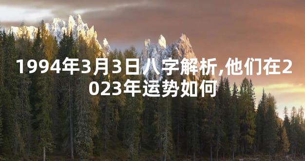 1994年3月3日出生的人性格上较为坚韧,创新能力和适应能力相对较强,外向开朗,富有生命力和活力。同时,他们也比较细腻、敏感,有着很强的艺术天赋和理财能力。因此,这样的人适合从事创意行业或者金融从业等领域。当然,八字只是决定人生走势的一个因素,具体还需要考虑个人所处的环境等因素。