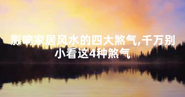 影响家居风水的四大煞气是哪四个?很多人听到煞气就会害怕,因为煞气对人们的影响是很大的,而且煞气又无处不在。但家里经常出现的煞气是哪几个?1.反光煞海景房或者是房子旁边...