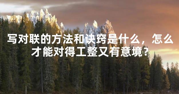 - 写对联的方法和诀窍是什么,怎么才能对得工整又有意境?